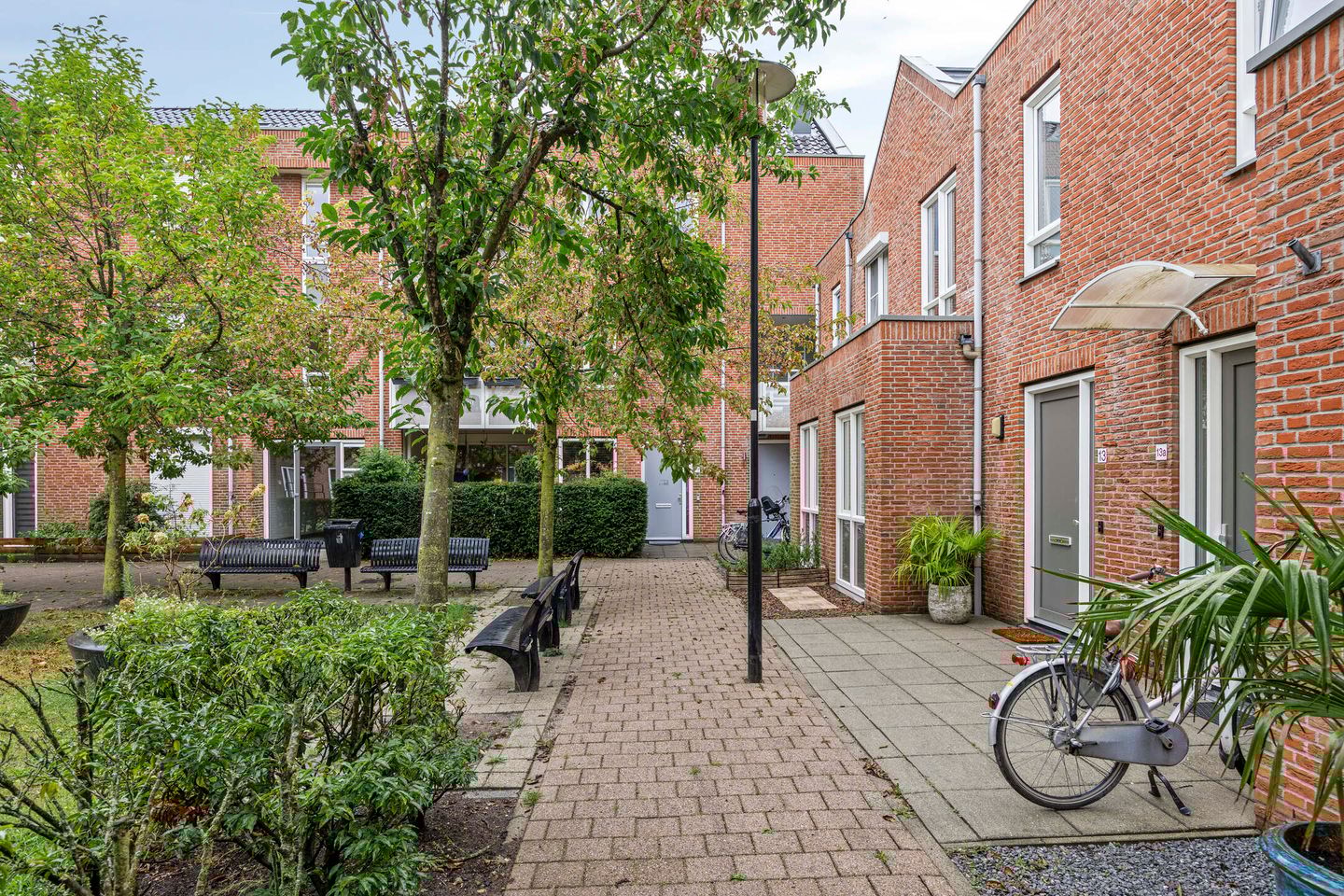 Via het verzorgde hofje met speeltuin bereikt u de entree van de woning. De hal is voorzien van een meterkast, trapopgang, garderobe, toilet met fontein en geeft toegang tot de lichte woon-/eetkamer.