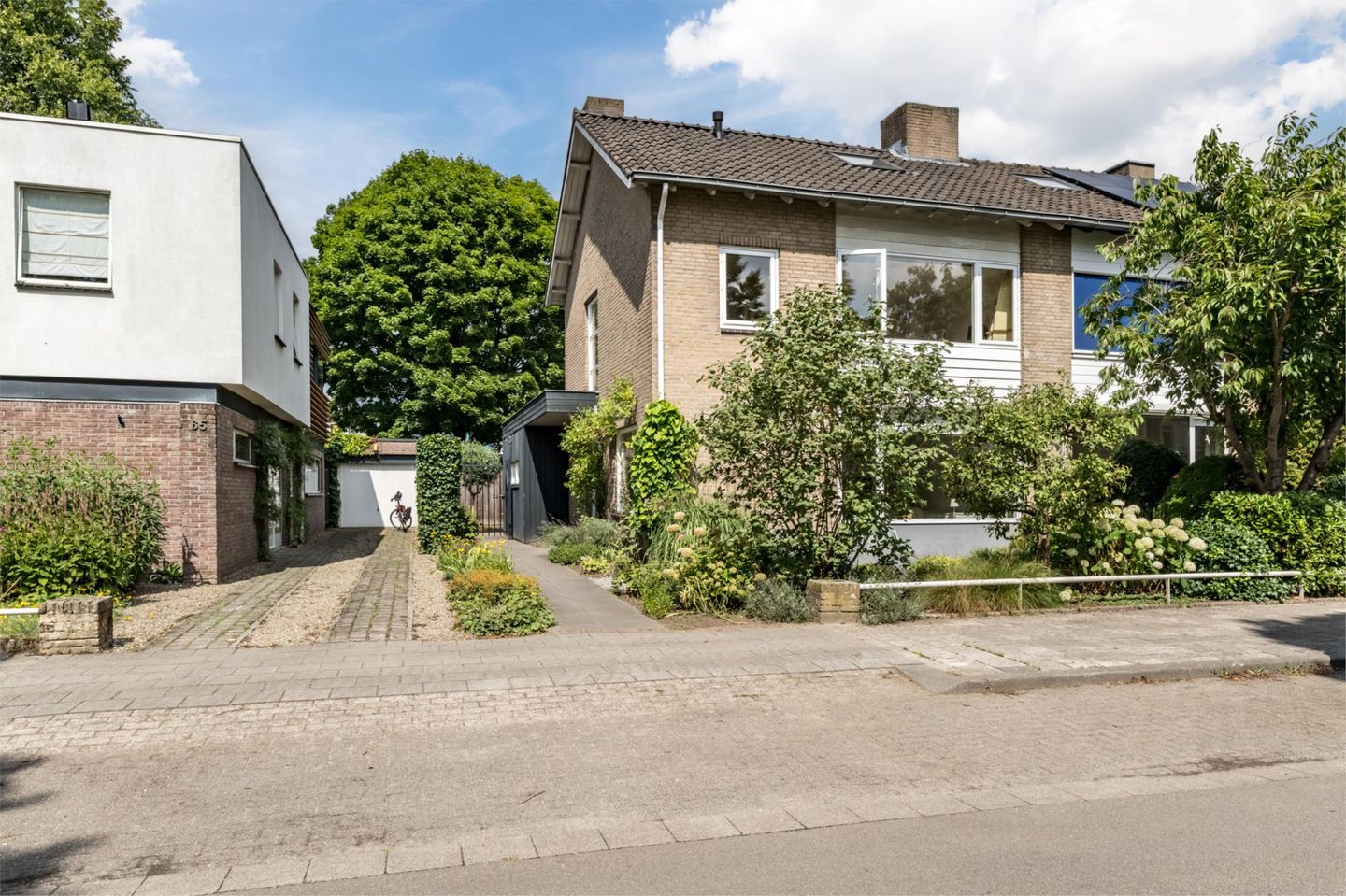 De woning beschikt over een verzorgde voor- en achtertuin. De achtertuin (georiënteerd op het noordwesten) met zowel zon als schaduwmogelijkheden heeft een terras, veel privacy en een praktische zij-ingang middels een poort. De voormalige garage doet nu dienst als ruime berging.