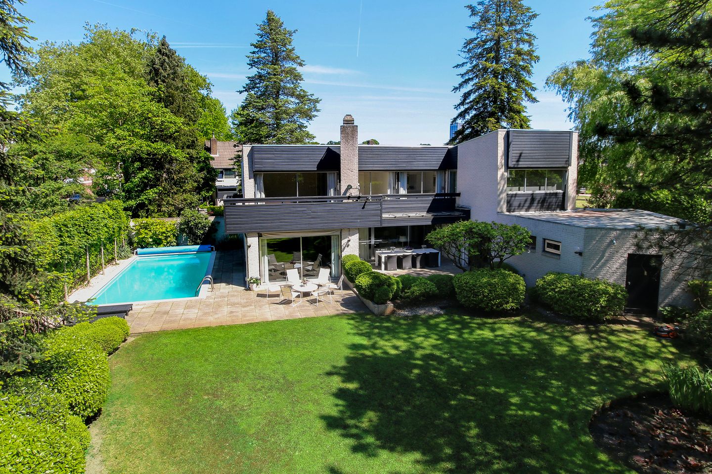 Op een uitmuntende locatie in Tilburg staat deze goed onderhouden villa met schitterende onder architectuur aangelegde parkachtige tuin, verwarmd zwembad, vijf slaapkamers en riante woonkamer. De architectuur van deze woning is zonder meer bijzonder. Tot op de grond doorlopende raampartijen zorgen voor veel lichtinval en bieden een fraai uitzicht op de vrij gelegen achtertuin. De gesloten voorgevel daarentegen garandeert geborgenheid en sfeer in de woning. Met de doorkijkjes vanuit de woonkamer naar de hal, de ronding bij de eettafel en het subtiel aangebracht niveauverschil in de woonkamer wordt de hand van de architect verder zichtbaar.