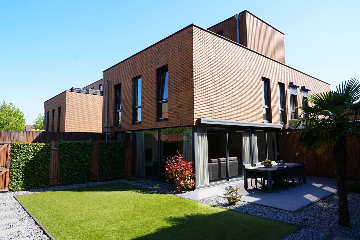Zodra u plaatsneemt in uw loungestoel, waant u zich op vakantie met uitzicht op een sierlijke palmboom en omringd door rust en privacy. Deze royale, op het noordoosten gelegen, zonnige achtertuin is een heerlijke plek om te barbecueën, te ontspannen en te genieten. De tuin is praktisch én sfeervol ingericht met vaste beplanting in de borders, kunstgras, twee ruime terrassen en een Douglas houten erfafscheiding. De hederahaag zorgt voor natuurlijke beschutting, terwijl de twee royale bergingen en achterom het gemak compleet maken. Een tuin waar buitenleven echt tot zijn recht komt.