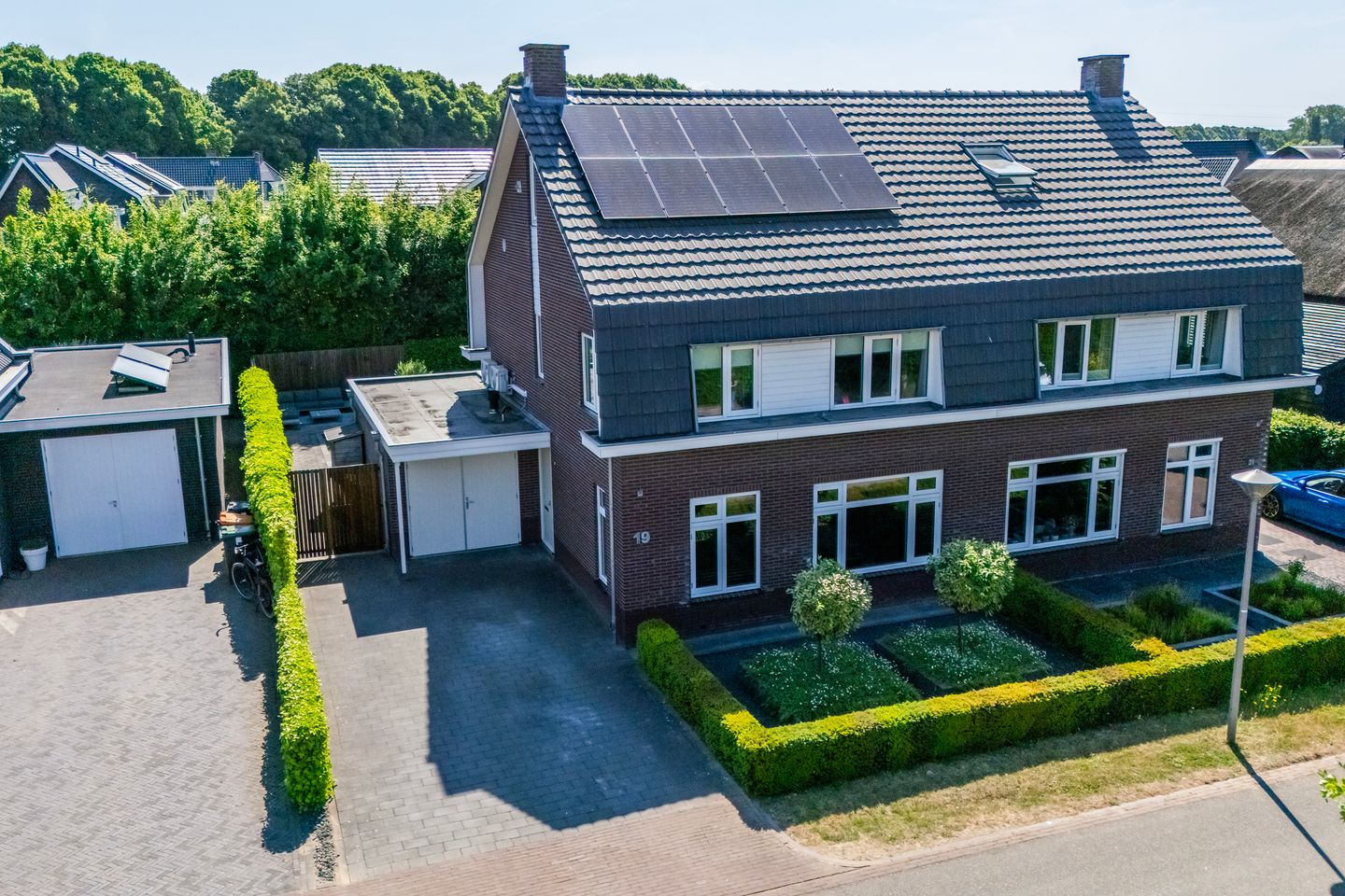 Je loopt de oprit op richting de entree. De keuken aan de achterzijde van de woning is de ideale plek voor een gezellige maaltijd met het gezin. Er is ruimte voor een eettafel en de keuken heeft openslaande deuren naar de tuin. Vanuit de keuken kun je ook makkelijk intern doorlopen naar de aangebouwde garage. De living aan de voorzijde is licht en ruim, een ideale plek om tot rust te komen of vrienden en familie te ontvangen. Loop je mee naar de tuin? De tuin is een waar paradijs: strak aangelegd met een groot gazon, borders en twee terrassen. Door het vele groen aan de achterzijde geniet je hier volop van privacy. Het elektrisch zonnescherm aan de achtergevel zorgt ervoor dat je ook op de zonnige dagen heerlijk buiten kunt zitten. De tuin is maar liefst circa 11,50 meter breed en 12,25 meter diep. Kortom, volop ruimte om te genieten van alles wat het buitenleven te bieden heeft.