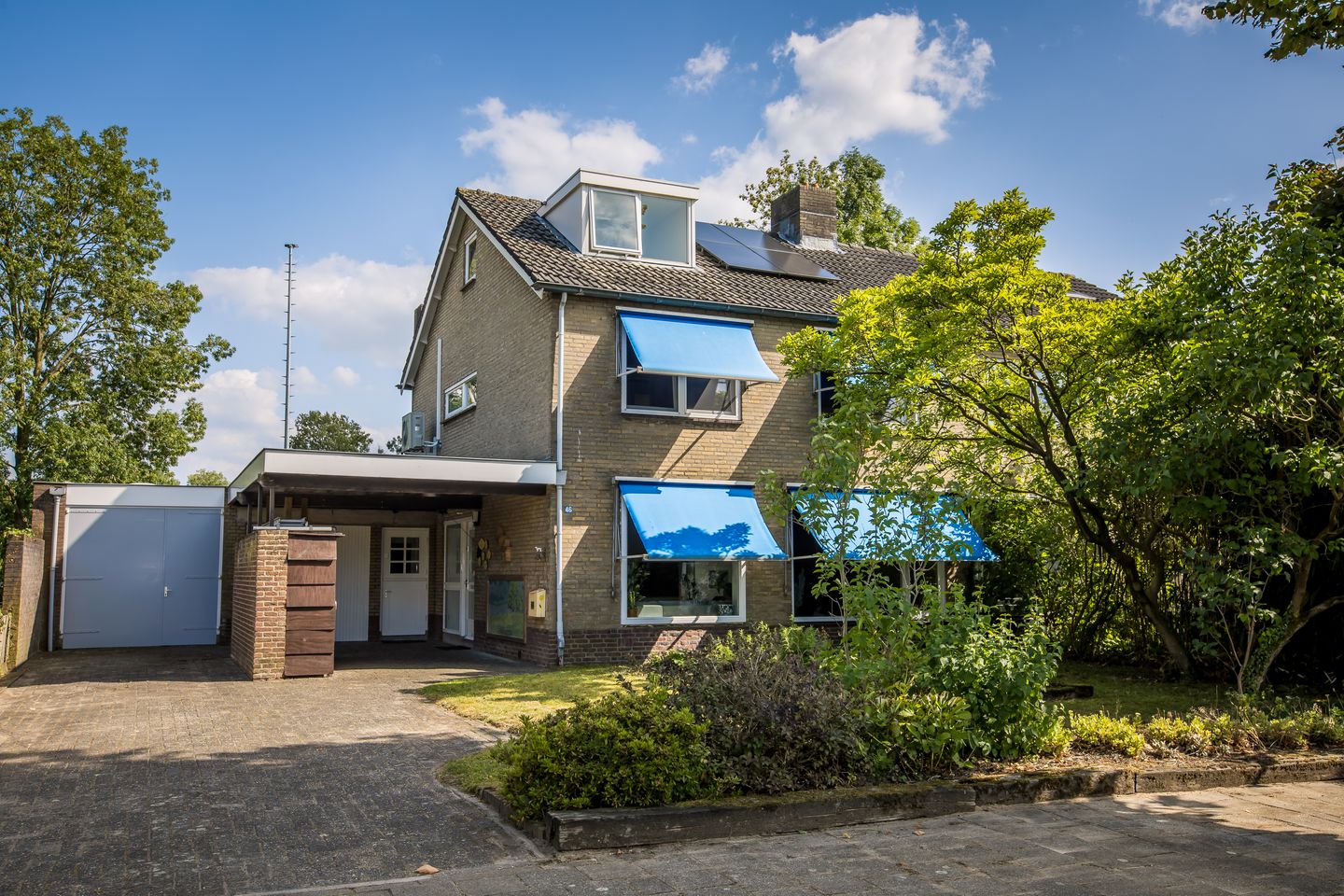De woning beschikt over een royale achtertuin op het zuidoosten (aangelegd in 2016) met een flink terras en 100% privacy. De voortuin biedt parkeergelegenheid op eigen terrein voor tenminste twee auto’s, de ruime carport is ideaal voor de fietsen.