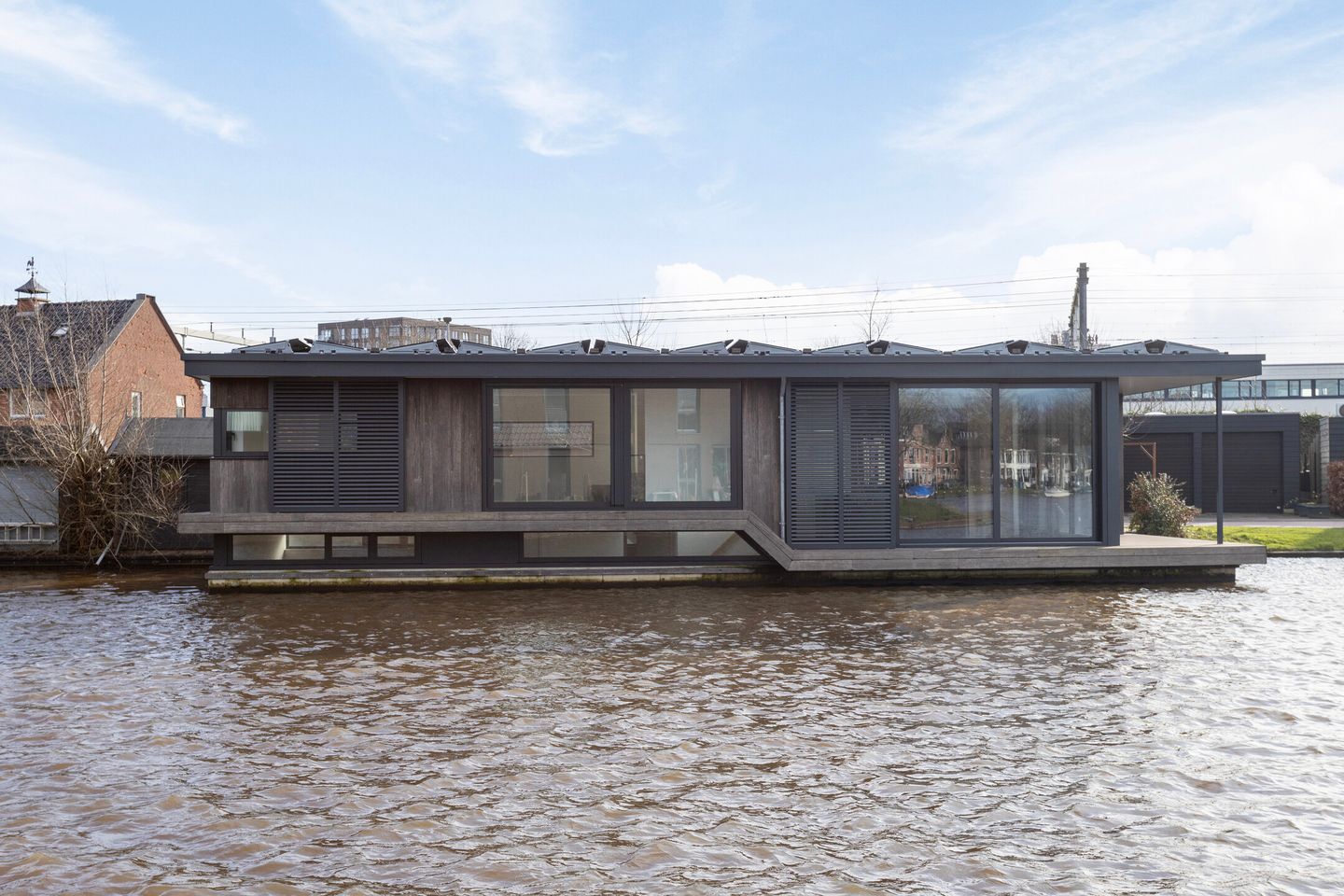 Unieke in 2022 onder architectuur (architect: Bob Ronday) gebouwde energieneutrale split-level woonark met tuin,