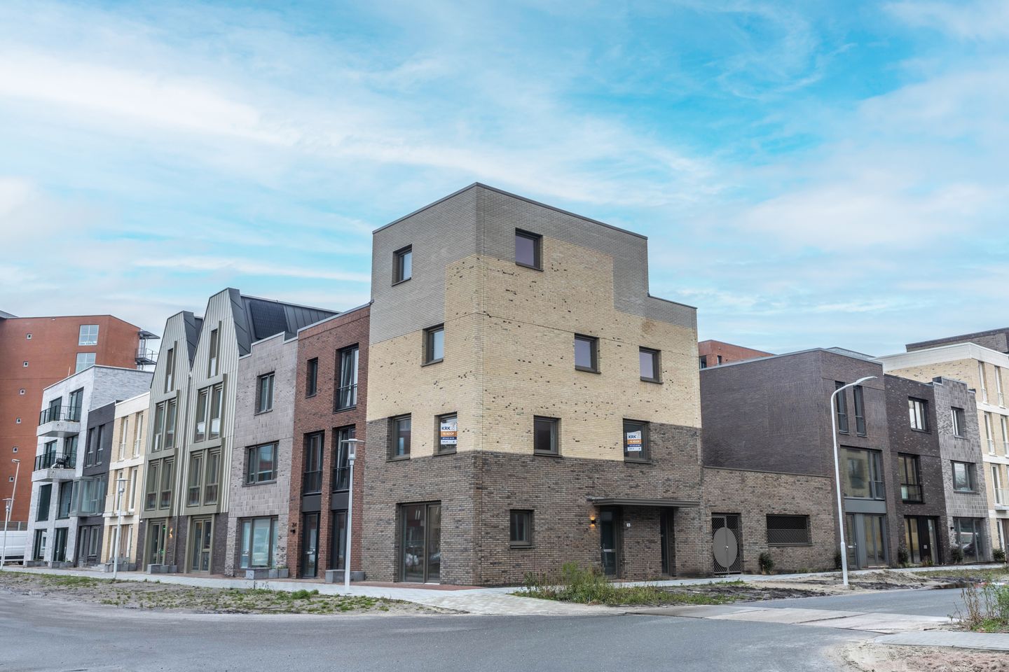 De woning beschikt over twee eigen parkeerplaatsen met een voorbereiding voor een elektrische laadpaal op een privé binnenterrein, toegankelijk via een op afstand bedienbare speedgate.