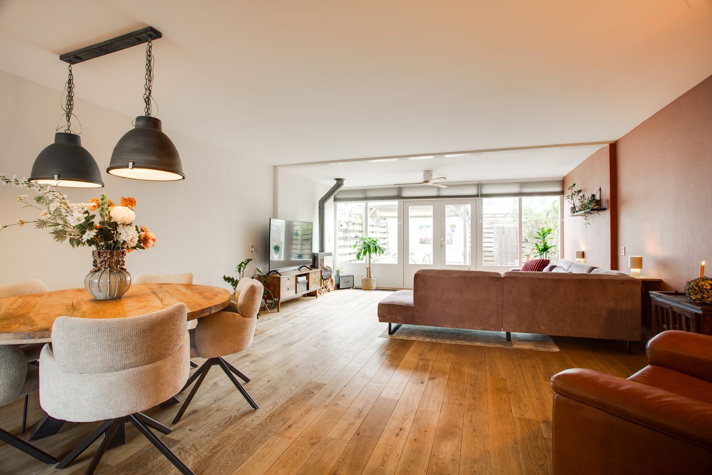 De woonkamer is ruim opgezet en beschikt over veel lichtinval dankzij de grote raampartijen aan de achterzijde. De ruimte biedt voldoende plaats voor zowel een comfortabele zithoek als een royale eethoek. Daarnaast is de woonkamer voorzien van een gasopenhaard, wat zorgt voor extra sfeer en een aangenaam woongevoel.