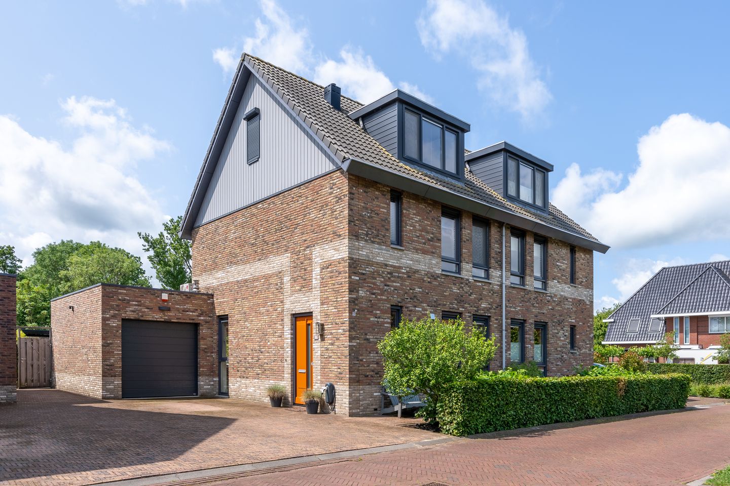Prachtige, stijlvolle helft van een Twee-onder-een-kap (bj. 2016/ca. 142m² woonoppervlakte) met uitgebouwde woonkamer, dakkapel, 5 slaapkamers en aangebouwde garage, twee parkeerplaatsen op eigen terrein, fraai aangelegde voor- en achtertuin met pergola op het zonnige zuiden met veel licht en lucht gelegen op ca. 253m² eigen grond.