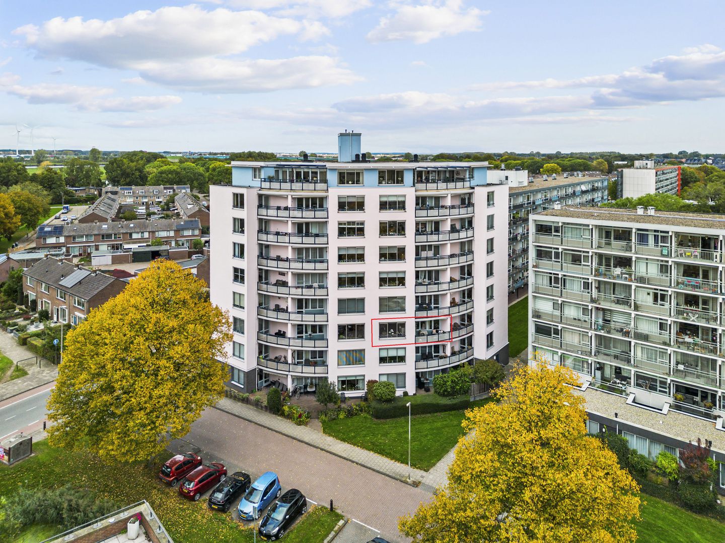 De woonkamer is heerlijk licht dankzij de grote ramen en kijkt uit over een vrij en groen uitzicht. De ruimte is ideaal voor een gezellige zithoek en een eettafel, met directe toegang tot het zonnige balkon op het zuidwesten. De moderne keuken, vernieuwd in 2018, is uitgevoerd in een praktische opstelling en uitgerust met inbouwapparatuur, waaronder een inductiekookplaat, afzuigkap, oven, vaatwasser en koel-vriescombinatie. De hoofdslaapkamer is royaal en licht, met voldoende ruimte voor een groot bed en geeft tevens toegang tot het balkon. Dankzij de airconditioning (2023) is het hier (en in de woonkamer) altijd aangenaam vertoeven. De tweede slaapkamer, die momenteel wordt gebruikt als kastenkamer, biedt de mogelijkheid om deze naar eigen wens in te richten. De badkamer, eveneens vernieuwd in 2018, is modern ingericht met een inloopdouche, wastafelmeubel en ligbad, afgewerkt met strakke tegels die zorgen voor een luxe uitstraling. Het balkon op het zuidwesten is een heerlijke plek om te ontspannen en te genieten van de middag- en avondzon, met een vrij uitzicht dat een gevoel van ruimte creëert.