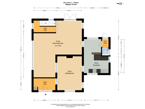 Begane grond: Entree via de ruime hal (ca. 6 m²) met toegang tot de eetkamer van 19 m².