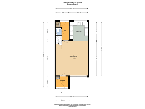 - 62 m² (11,09 meter diep en 5,58 meter breed)