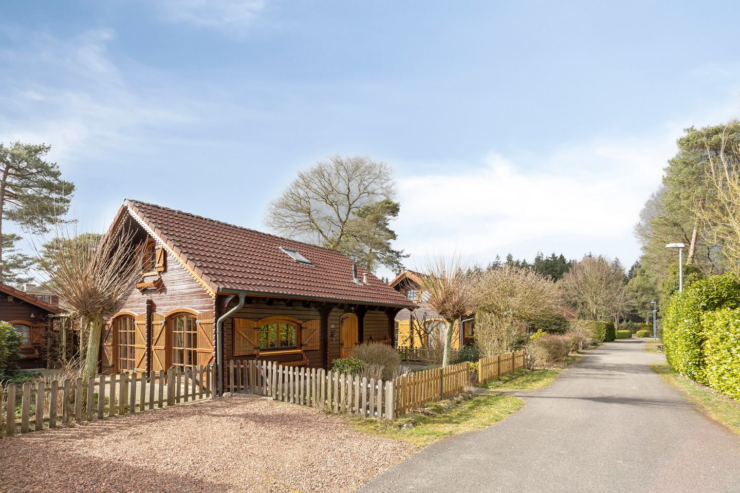 De voorzijde is voorzien van een houten hekwerk als afscheiding met diverse beplanting wat allemaal keurig is bijgehouden. Aan de voorzijde is tevens ruimte voor het parkeren van 2 auto's.