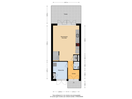 - 13 m² (3,00 meter diep en 4,40 meter breed)