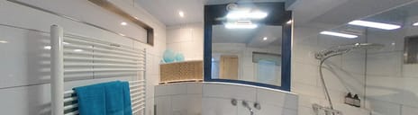 - Inloopdouche, toilet, wastafel, en wastafelmeubel