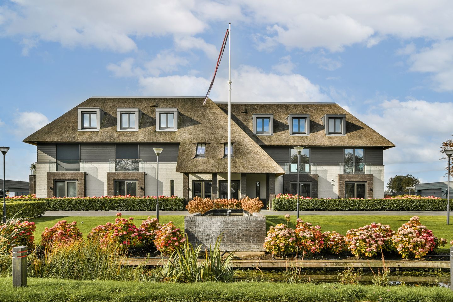 De villa met rieten kap is omgeven door een fraai aangelegde tuin aan zowel de voor- als achterzijde. Via een karakteristieke ophaalbrug bereikt u het bijbehorende eiland in de plas, waar zich de privé-aanlegsteigers bevinden – perfect voor uw sloep, zeilboot of een frisse duik.