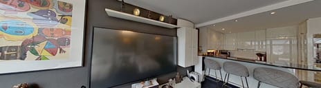 De keuken is praktisch ingericht met veel opbergruimte en moderne inbouwapparatuur, waaronder een oven, vaatwasser en kookplaat. Daarnaast is er een gezellige bar met barkrukken. Dankzij de open indeling kunt u tijdens het koken in contact blijven met de rest van de woning.