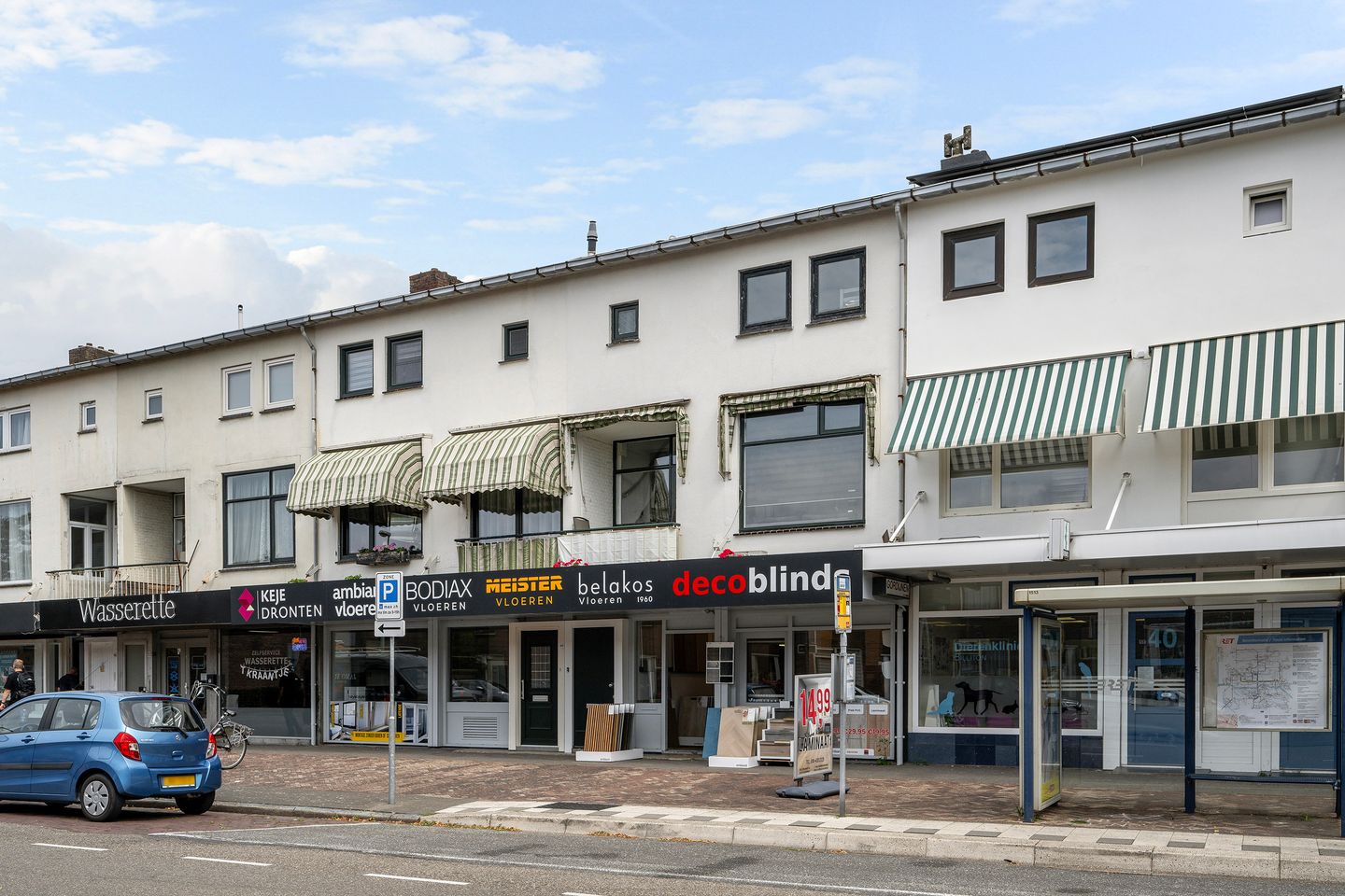 Het balkon is gelegen aan de voorzijde en heeft een levendig uitzicht over de laan. De vloer is voorzien van kunstgras, er hangt een markies voor de nodige schaduw en de deur naar het balkon is voorzien van een hordeur.