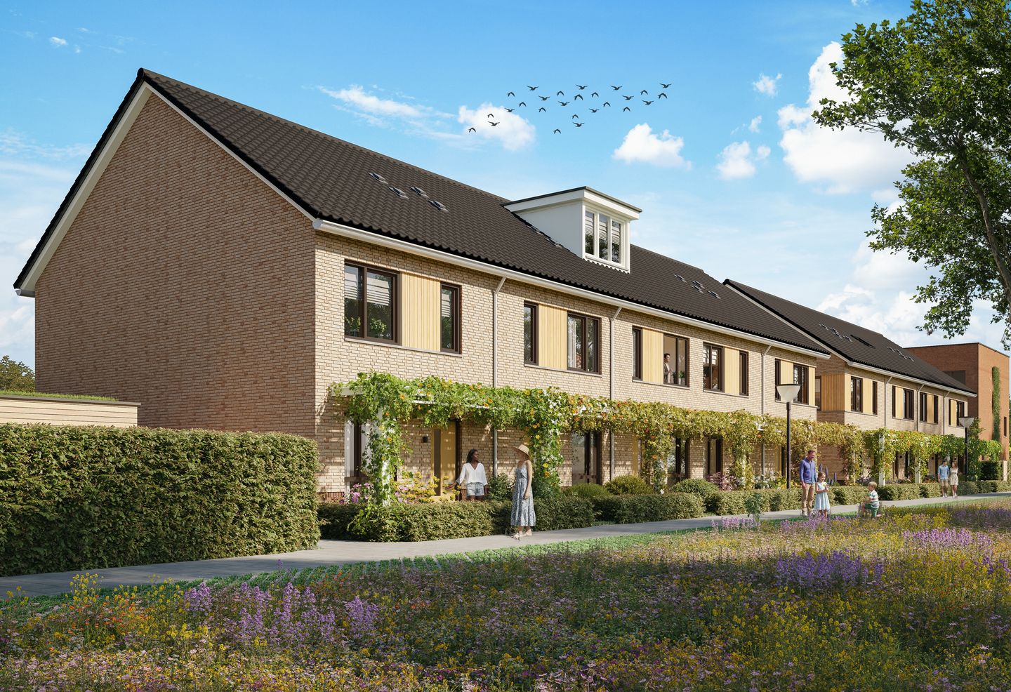 Eengezinswoning Type C1 heeft een breedte van 5.1m en is gelegen op eigen grond met een tuin op het oosten.