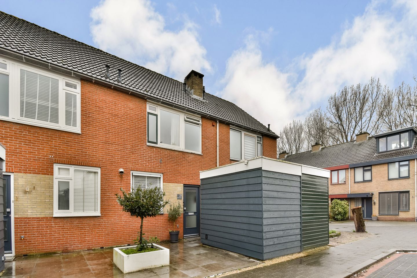 Via de keurig aangelegde voortuin, met een ruime berging voorzien van in 2025 nieuw aangebrachte Douglas rabatdelen, bereikt u de entree van de woning.