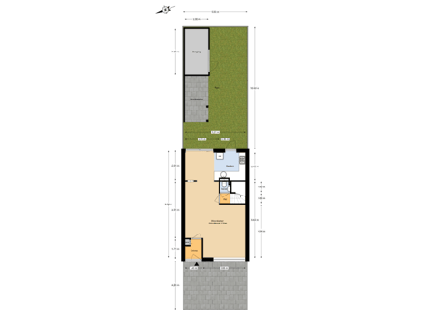- 55 m² (10,60 meter diep en 5,21 meter breed)