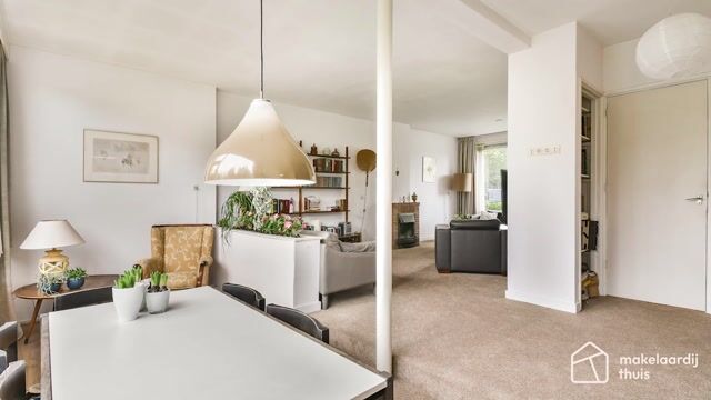 De woning beschikt over een heerlijk lichte woonkamer met open haard en heeft een prachtig uitzicht op de ruime straat aan de voorzijde. De speelse uitbouw, welke iets lager is gelegen, sluit mooi aan op de zitkamer en kan bijvoorbeeld gebruikt worden als eetkamer. Om de hoek vind je de ruime keuken en via twee deuren is de heerlijke en ruime achtertuin bereikbaar.