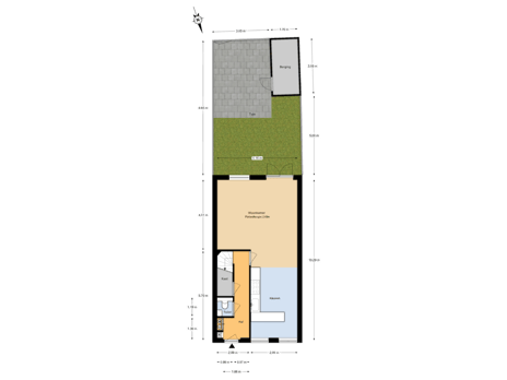 - 45 m² (8,65 meter diep en 5,15 meter breed)