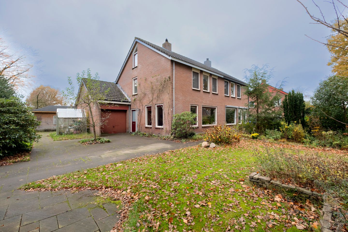 De aangebouwde garage (ca. 20 m²) is langer dan normaal en heeft een grote vliering. Deze is beloopbaar en biedt voldoende hoogte om te kunnen staan. De ruime oprit biedt de mogelijkheid om meerdere auto's op eigen terrein te parkeren.