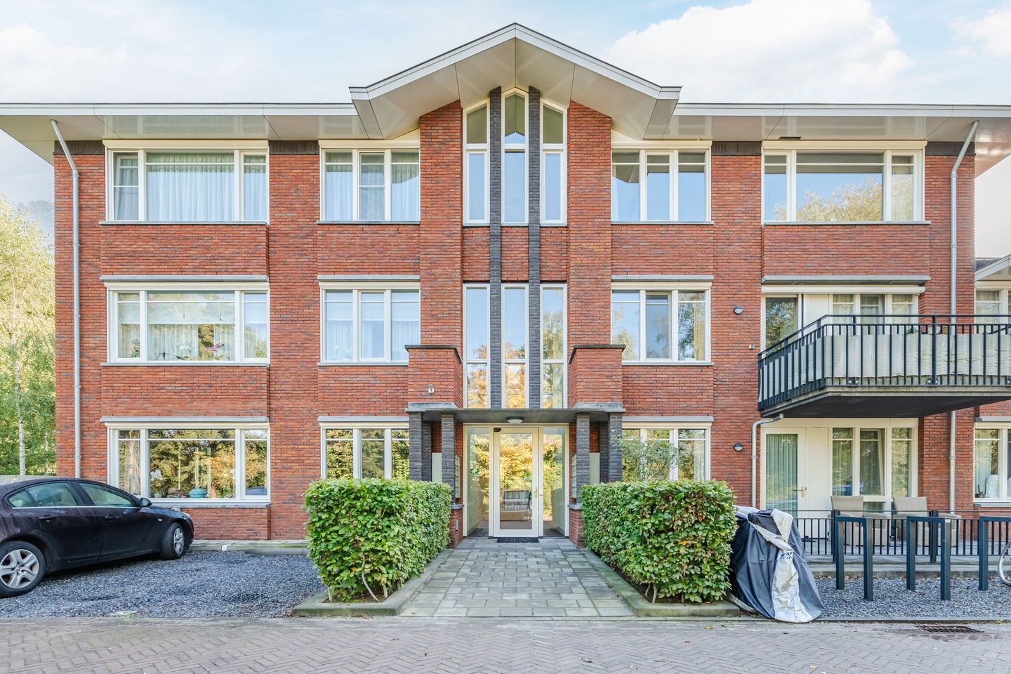 Bij de ingang van het complex bevinden zich de brievenbussen en het bellentableau. De welkomsthal is ruim en luxe opgezet. Vanuit de hal heb je toegang tot de gezamenlijke binnentuin, de trap naar de berging in de onderbouw en het appartement!