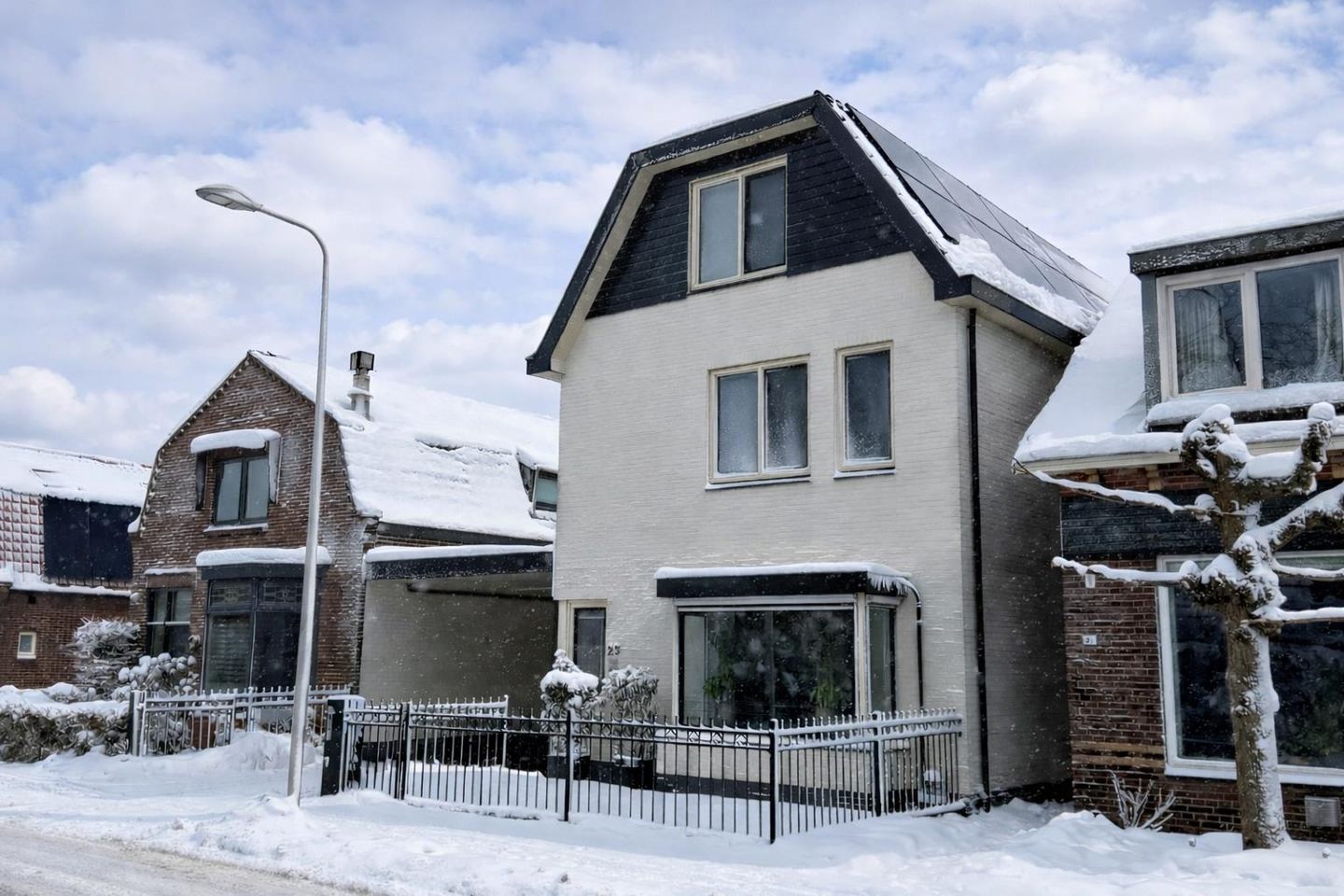 In een dikke laag sneeuw laat deze vrijstaande woning aan de Schoolstraat zich van haar meest charmante kant zien. Midden in het gezellige dorpsleven van Vleuten staat deze opvallende verschijning: wit geschilderd, statig en nét een tikje hoger dan de rest. Een echte eyecatcher — in elk seizoen, maar stiekem extra mooi in de winter.