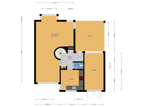 Stap je binnen, dan trekt de elegante ronde trap meteen de aandacht – een eyecatcher die van de hal tot de zolder reikt. Aan de achterzijde vind je de moderne luxe keuken met diverse inbouwapparaten en een water ontkalker.