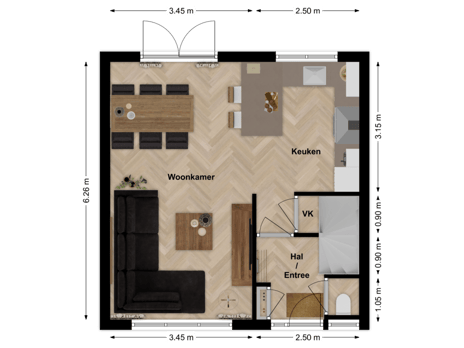 - 107 m² (16,50 meter diep en 6,50 meter breed)