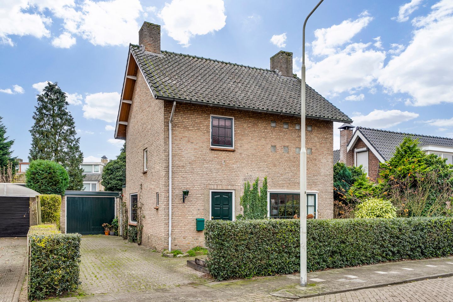 Degelijk gebouwd vrijstaand woonhuis met L-vormige living, woonkeuken en eenvoudige serre op de begane grond, drie slaapkamers en badkamer op de eerste verdieping en vaste trap naar tweede verdieping met overloop en 4e slaapkamer met dakkapel. Ruime tuin rondom met vrijstaande garage en achtertuin op het zuiden.