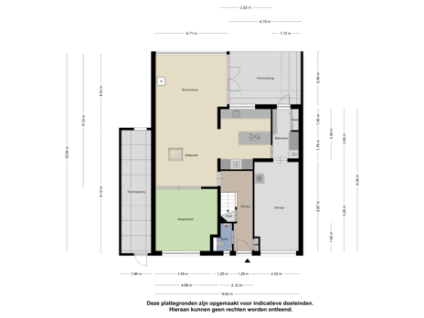 De inpandige garage (ca. 16,8 m²) biedt ruimte voor een auto, fietsen of extra opslag.