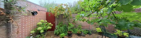De stadstuin is sfeervol aangelegd met sierbestrating en volwassen beplanting. Er is voldoende plek om in alle rust van de zon te genieten.