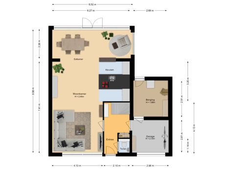 - 140 m² (10,00 meter diep en 12,85 meter breed)