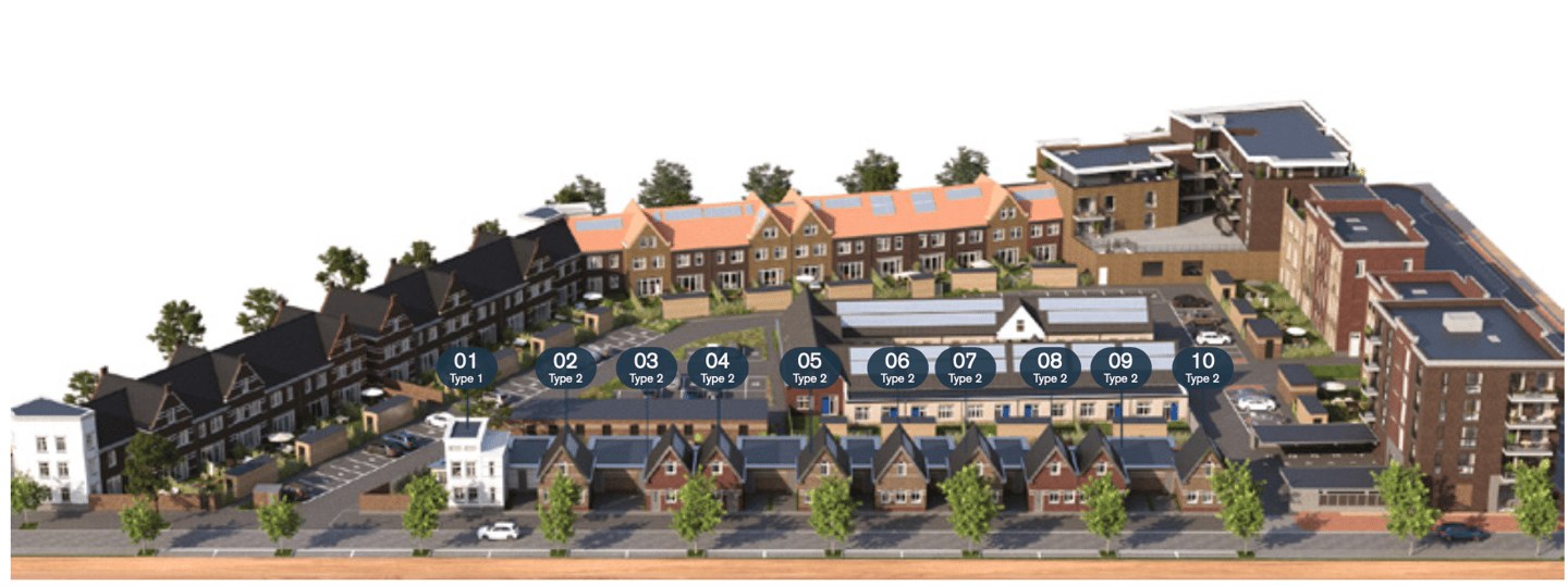 De woningen zijn geschakeld en hebben allemaal een compleet woonprogramma op de begane grond. De speelse indeling van het woonprogramma zorgt voor een nieuwe manier van levensloopbestendig wonen. Comfortabel en stijlvol wonen, met het oog op de toekomst.