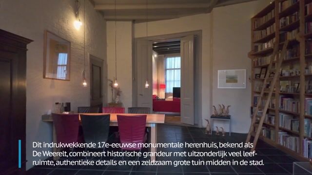 Dit royale imposante rijksmonument uit de 17e eeuw, genaamd ‘De Weerelt’, bestaat uit een voor- én achterhuis en biedt naast charme en karakter, bijzonder veel leefruimte. De woning beschikt over een schitterende, ommuurde achtertuin van ca. 300 m². Liefhebbers van monumentale allure, sfeer en ruimte – zowel binnen als buiten – kunnen hier al hun woonwensen vervullen. Naast hoge balkenplafonds en grote raampartijen met originele houten blinden beschikt het woonhuis over een ruime zolder én een riante en droge kelderruimte onder het voorhuis. De voorgevel is voorzien van een statige gecementeerde lijstgevel uit ca. 1899.