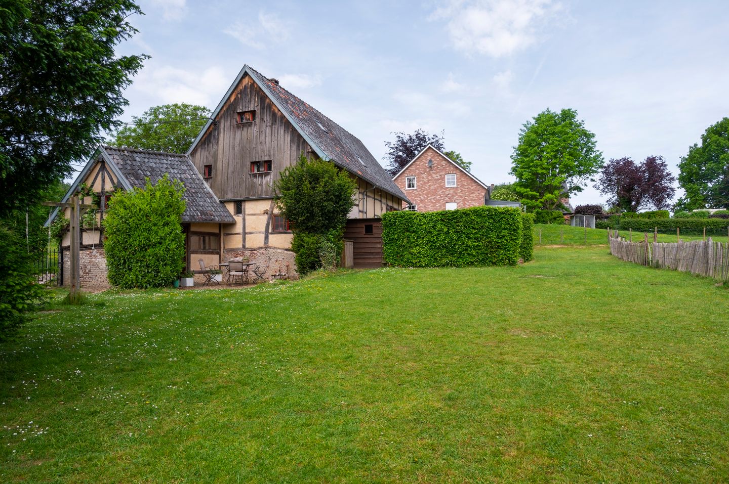 Welkom in Veurs, een charmant gehucht in de Belgische Voerstreek. Te midden van uitgestrekte fruitboomgaarden ligt deze prachtige vakwerkboerderij op een perceel van 1ha32a69ca, met een woonoppervlakte van 257 m². Het pand uit 1700 deed jarenlang dienst als boerderij en werd in 2000 volledig gerenoveerd tot een sfeervolle vakantiewoning. De woning is voorzien van houten kozijnen met dubbel glas en vloerverwarming in alle ruimtes met rode tegelvloeren, wat zorgt voor extra comfort en een warme, authentieke uitstraling.