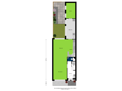 - 27 m² (9,00 meter diep en 3,00 meter breed)
