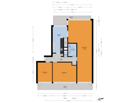 + gebouw gebonden buitenruimte ca. 23 m2 (balkon aan de voor- en achterzijde)
