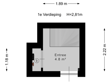 Via het open portiek bereik je de voordeur op de eerste verdieping. In de hal bevinden zich de meterkast, bergkast en trapopgang naar de tweede verdieping.