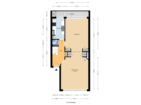 Middels fraai aangelegde voortuin toegang tot de gezamenlijke afgesloten entree met trapgang naar de eerste etage alwaar toegang tot het appartement. Deze verdieping beschikt over een riant formaat woonkamer ensuite met een extra brede voorkamer van ca. 4.4 meter. De eetkamer is ook mooi van formaat en geeft toegang een balkon aan de achterzijde. De keuken bevindt zich ook aan de achterzijde en geeft eveneens toegang tot het balkon. Op de overloop verder nog een separaat toilet.