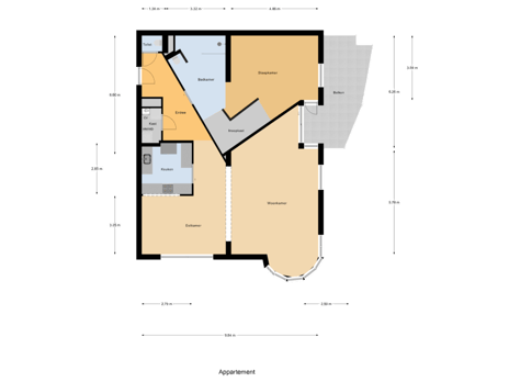 Indeling: Afgesloten entree, videofoon en brievenbussentableau. Riante centrale hal voorzien van luxe meubilair. Lift en gestoffeerd trappenhuis naar 1e etage. De hal op de 1e etage geeft toegang tot 4 woningen. Entree appartement. Dit appartement is in 2017 nagenoeg geheel verbouwd. Hal met garderoberuimte, videofoon en modern uitgevoerde toiletruimte. Bijkeuken met CV opstelplaats (Intergas HRE uit 2024) en wma en droger aansluitpunten. Toegang tot het slaapvertrek via de half-open badkamer welke is voorzien van een meubel met dubbele wastafel, een riante inloopdouche en het 2e toilet. Grenzend aan de badkamer de grote inloop garderoberuimte. De slaapkamer zelf is ca. 4.86 x 3.59 deels ca. 6.26 ( op het breedste gedeelte) Vanuit de slaapkamer toegang tot het terras/balkon. Zeer grote en lichte woon- eetkamer ca. 9.84 x 5.78. De woonkamer is extra groot omdat 1 van de oorspronkelijke slaapkamers bij de woonruimte is getrokken (dit is indien gewenst eenvoudig weer terug te brengen). Het mooie van deze aanpassing is niet alleen de veel riantere leefruimte maar ook de directe toegang tot het balkon en veel meer zicht en lichtinval. Semi- open keuken met enkele inbouwapparatuur. Het appartement is grotendeels voorzien van een mooie laminaatvloer. Modern, speels en eigentijds appartement in een luxe wooncomplex. Oplevering in overleg, kan snel.