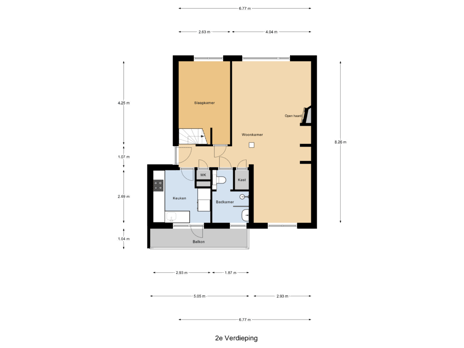 De woning beschikt over een balkon aan de achterzijde, bereikbaar vanuit de keuken.