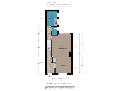 - 50 m² (14,00 meter diep en 4,76 meter breed)