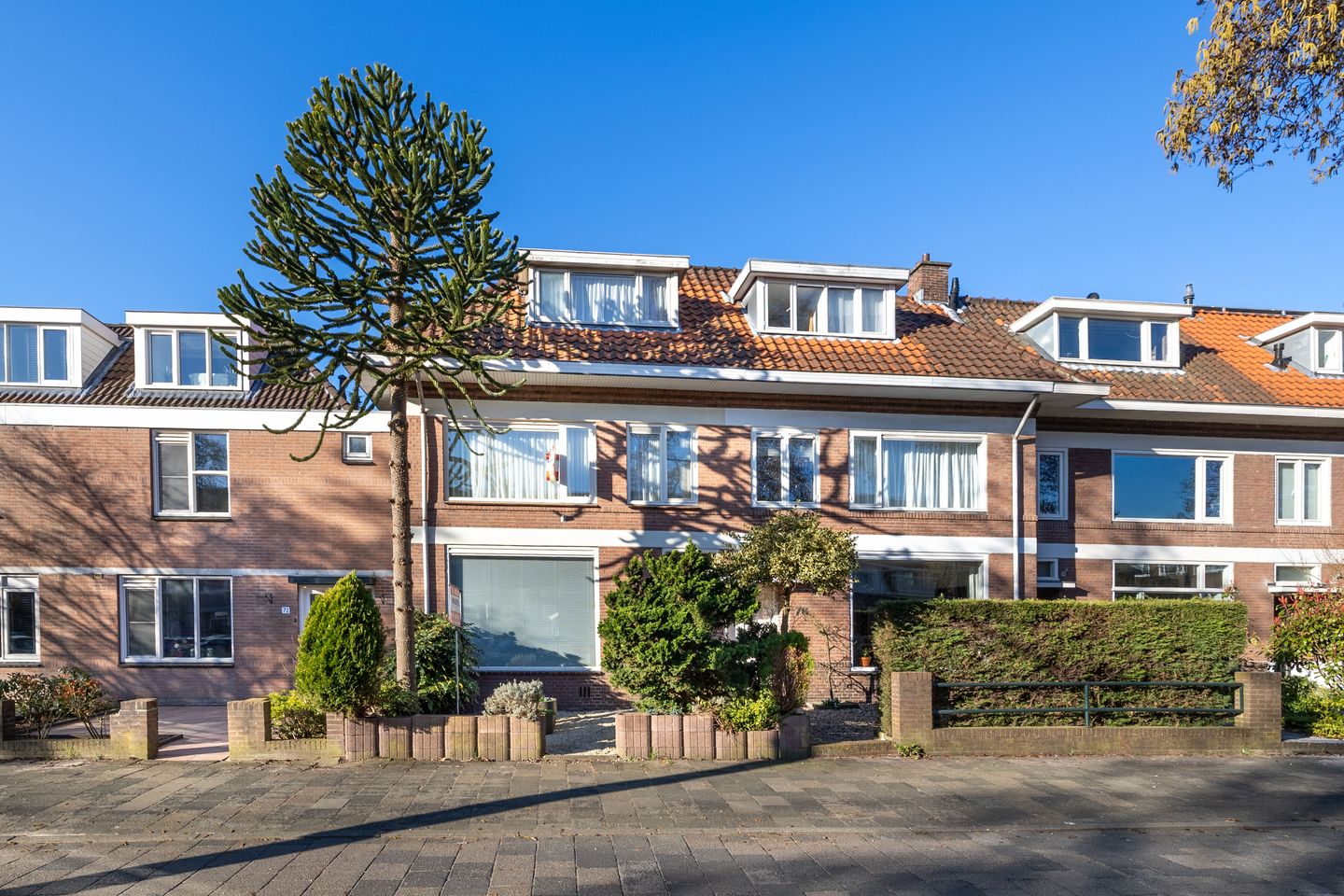 Front garden, entrance to the house. Vestibule with meter cupboard, hall with separate toilet and spacious basement. Charming bright living/dining room with fireplace and access to the back garden. Half open kitchen with access to the low-maintenance landscaped back garden with lots of privacy. The back garden has a fantastic sunny position on the southwest.