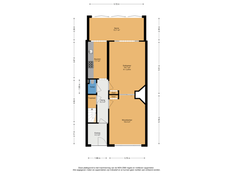 - 44 m² (7,65 meter diep en 5,72 meter breed)