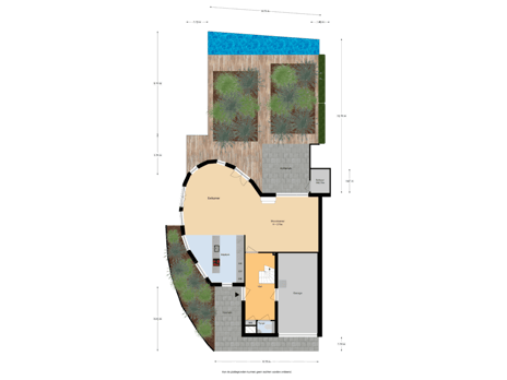 Aan de voorzijde bevindt zich de inpandige garage/berging van ca. 6.23 x 3.10 m, voorzien van een elektrisch bedienbare deur – ideaal voor fietsen, stalling of extra opslag.
