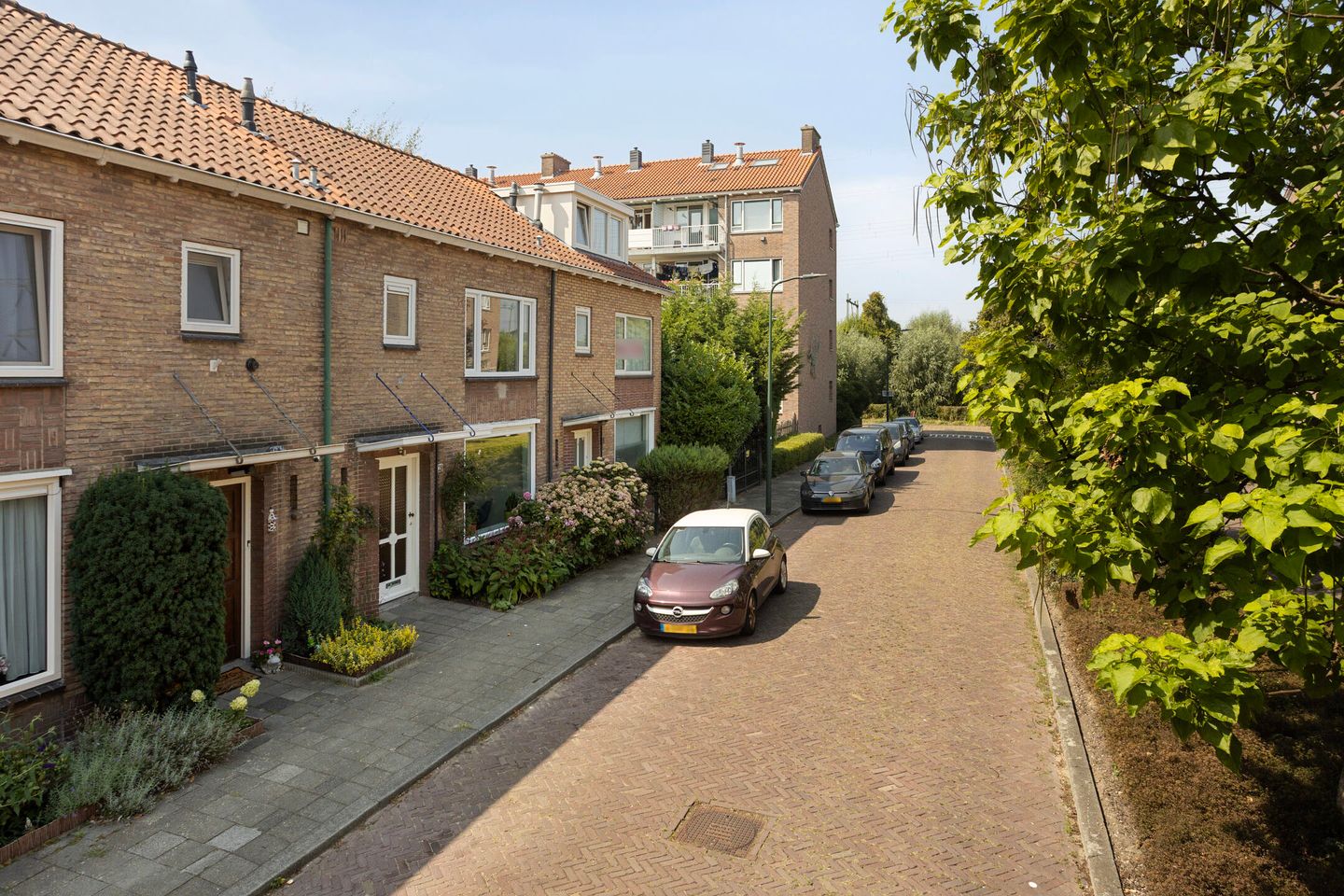 Gezellig, in het groen gelegen 5-kamer eengezinswoning met voortuin en een fraai aangelegde zonnige achtertuin op het zuidwesten.