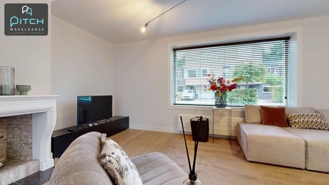 De entree met moderne garderobehoek en luxe betegeld toilet geeft direct de toon aan: stijl, rust en kwaliteit. De riante woonkamer is tot in de puntjes verzorgd, met glad gestucte wanden, hoge plinten, een houtgestookte Anneke Dekkers open haard, een prachtige eikenhouten vloer en veel lichtinval dankzij de grote raampartijen. Het geheel straalt warmte en elegantie uit, met genoeg ruimte voor een royale zithoek en een gezellige eettafel bij de schuifdeur naar de tuin.