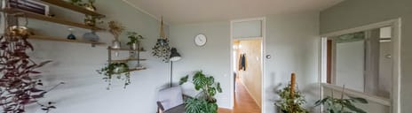 Via de afgesloten entree bereik je het appartement op de vierde verdieping. Al bij binnenkomst valt de fijne indeling op: een centrale hal die toegang geeft tot alle vertrekken en meteen een gevoel van ruimte biedt.