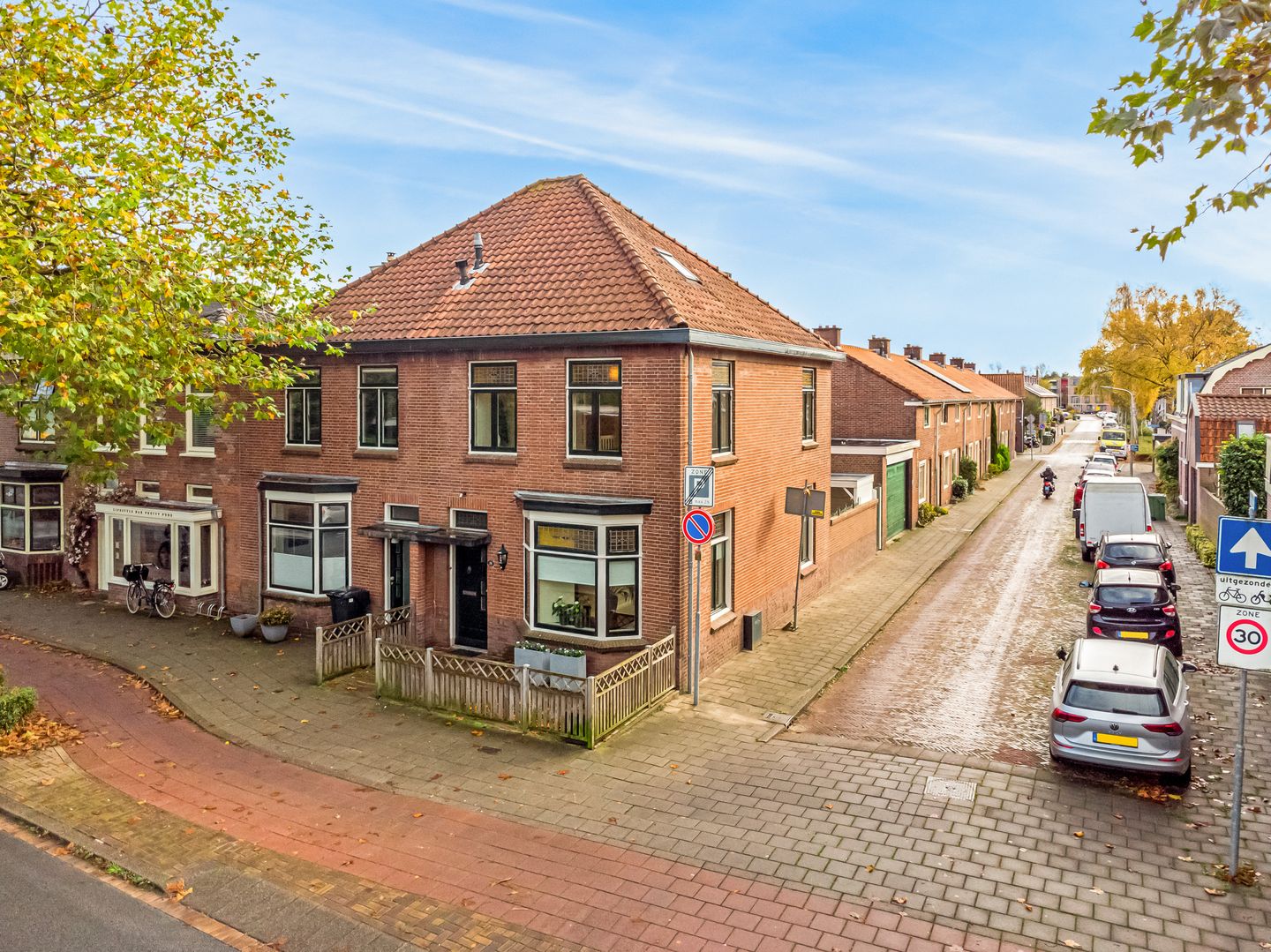 De voortuin vormt een mooie scheiding tussen het trottoir en de voordeur en zorgt voor de nodige privacy. Bij binnenkomst in de hal begint direct de aangename woonoppervlakte waar het voorportaal met authentieke tussendeur een warm welkom vormt. Naast de trap naar de bovengelegen etage is in de hal eveneens een zeer ruime trapkast en een toilet met fonteintje gesitueerd. De toegangsdeur naar de living komt uit op een centrale plek tussen het eetgedeelte en de aan de voorzijde geplaatste zit gedeelte. Aangenaam lichte en ruimtelijk ingedeelde functies vullen de begane grond die beschikt over oude én nieuwe details die passen bij de bouwperiode van het huis; glas-in-lood-ruiten, paneeldeuren, raamluiken en klassieke kolomradiatoren. De lichte keuken, grenzend aan de keurige achtertuin, is voorzien van diverse apparatuur zoals een fornuis met brede oven en een afzuigkap. De koelkast, vriezer en de vaatwasser zijn geplaatst in de bijkeuken. Hier zijn ook de aansluiting voor de wasmachine en droger. De achtertuin heeft een achterom via een afgesloten poort met een overkapping.